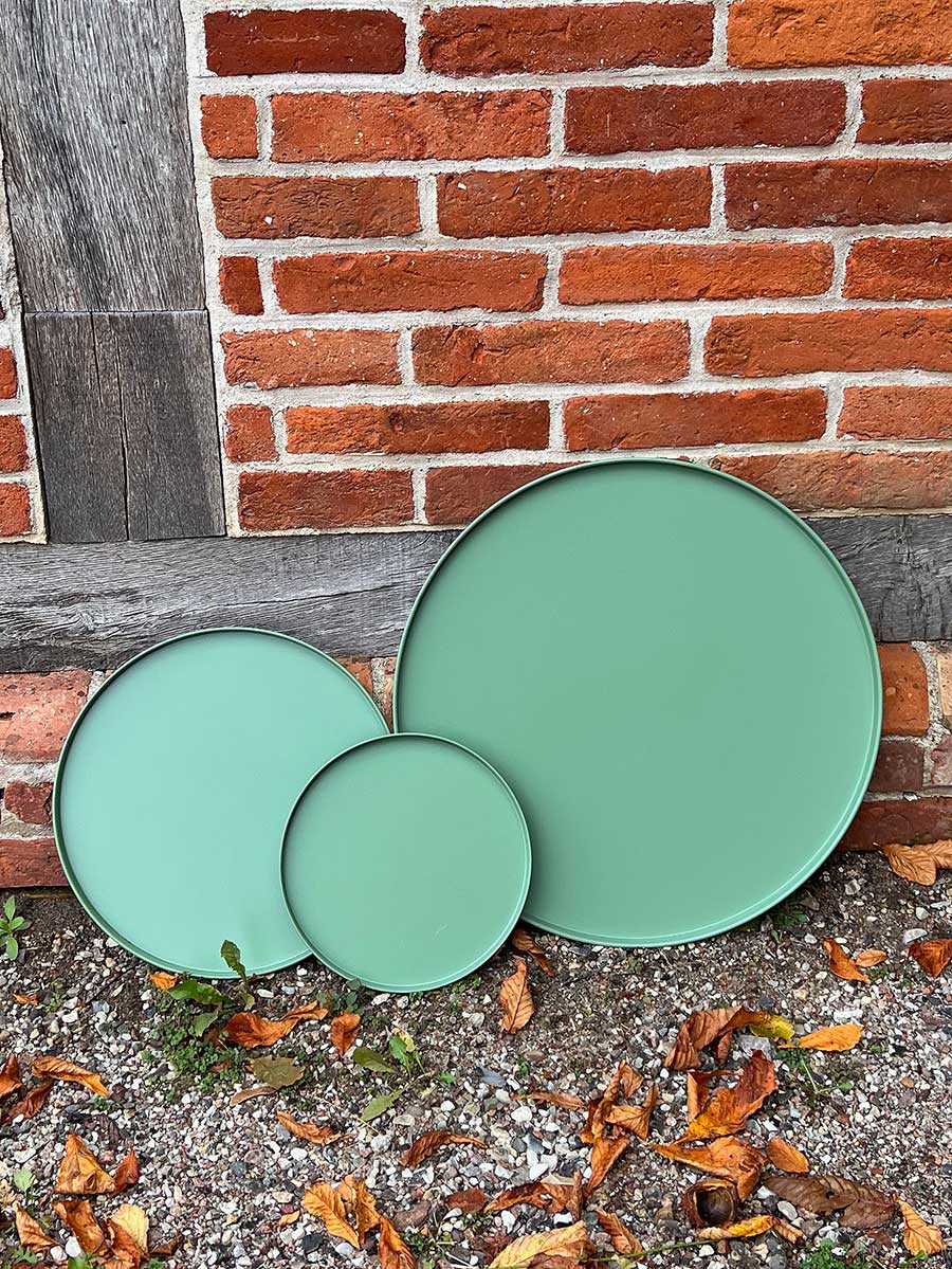 Lieferumfang: 1 Metall-Tablett Teller salbei grün D35
