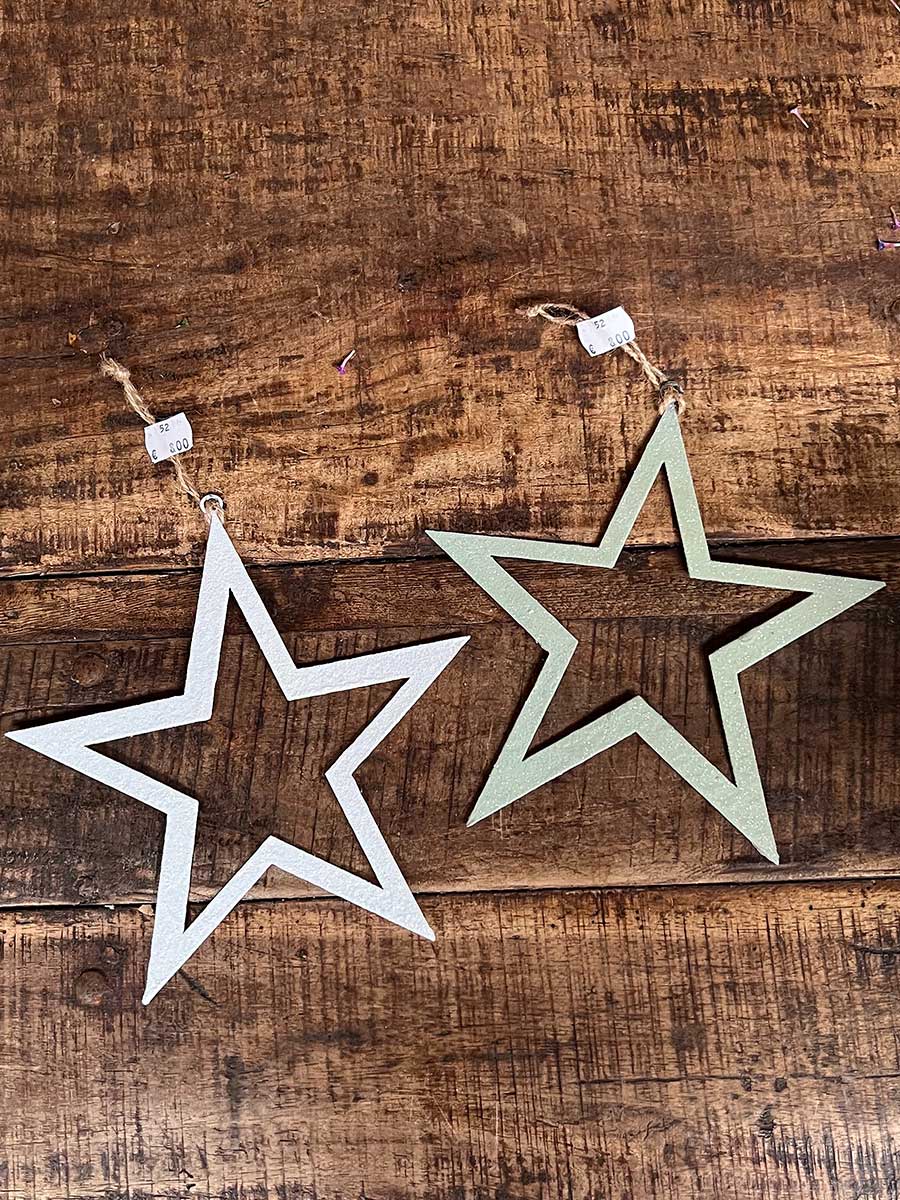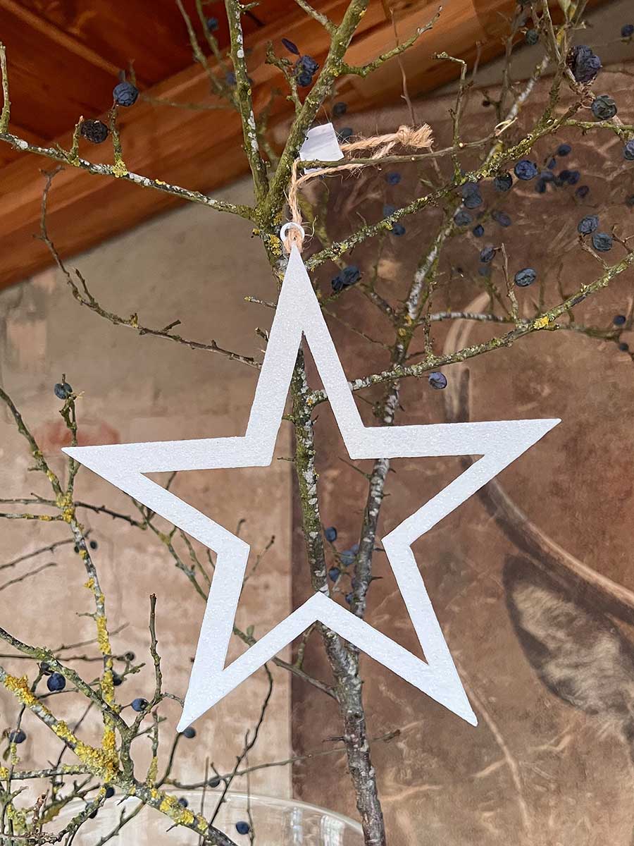 Stimmungsvoller Glitzer Metallstern in weiß - ein zauberhaftes Dekorationselement zum Aufhängen und verschönern von Pflanzschalen - nicht nur für die Herbst-und Weihnachtszeit geeignet.