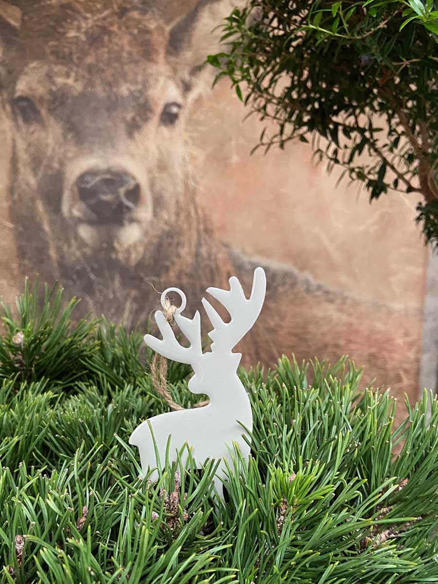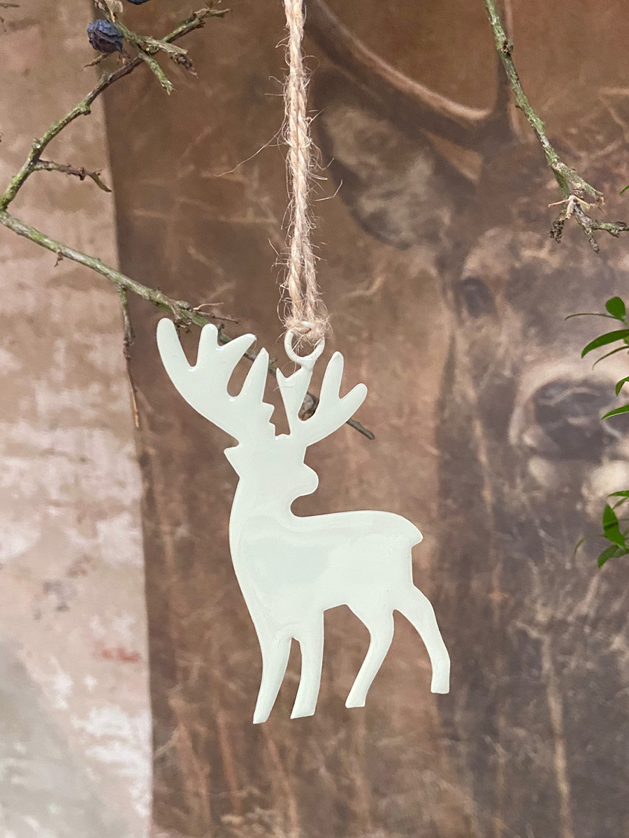 Lieferumfang: 1 Metallanhänger Hirsch weiß lackiert H10