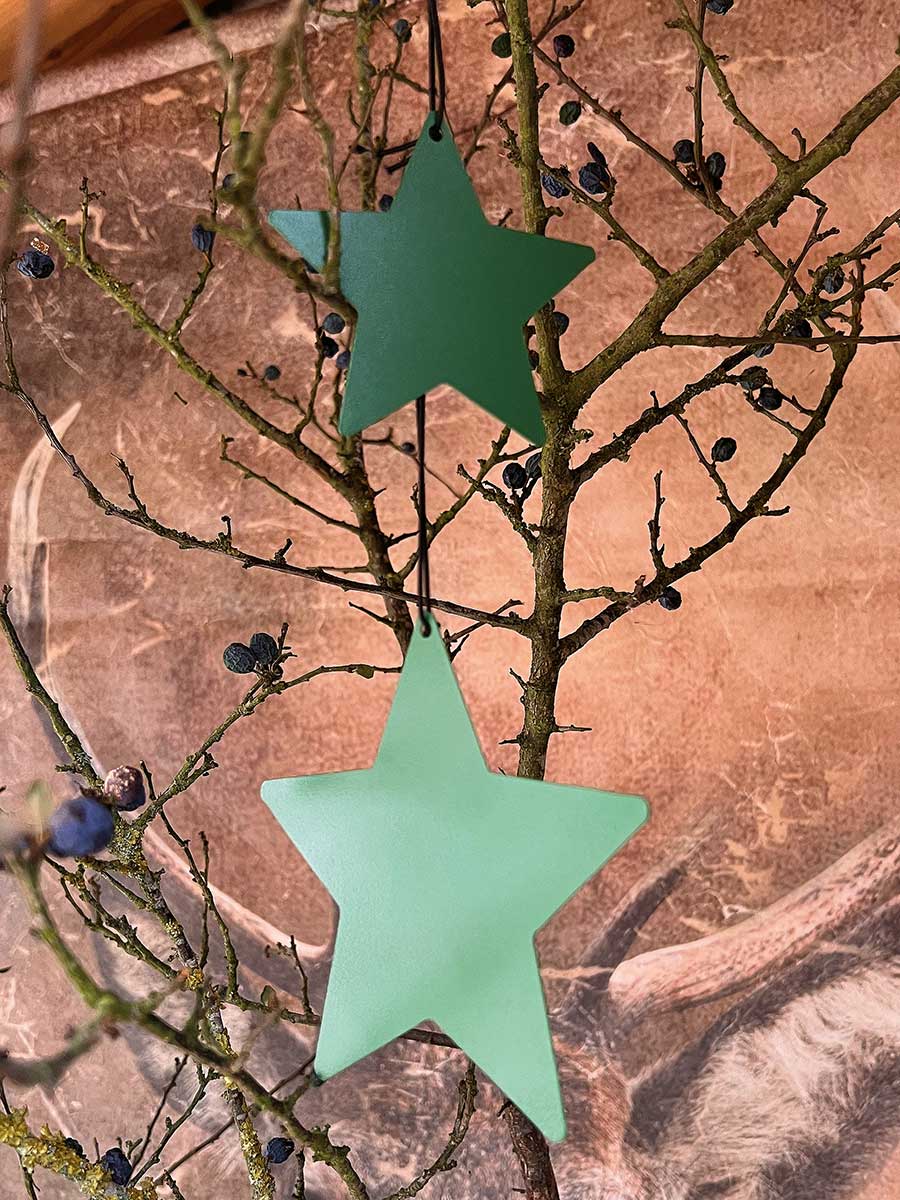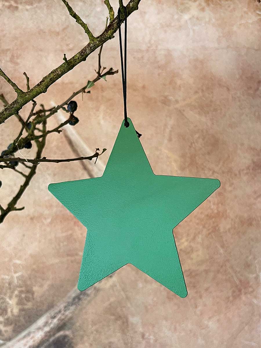 Lieferumfang: 1 Metallstern grün matt Stern M zum Aufhängen D12