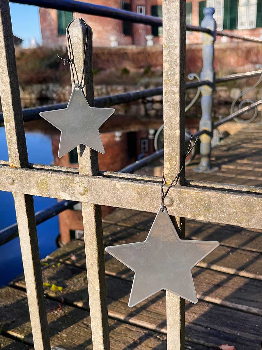 Lieferumfang: 1 Metallstern silber Stern S zum Aufhängen D10.5