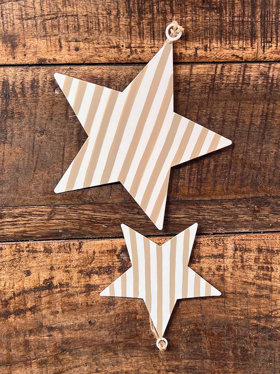 Metallstern taupe weiß gestreift matt Stern M zum Aufhängen D15