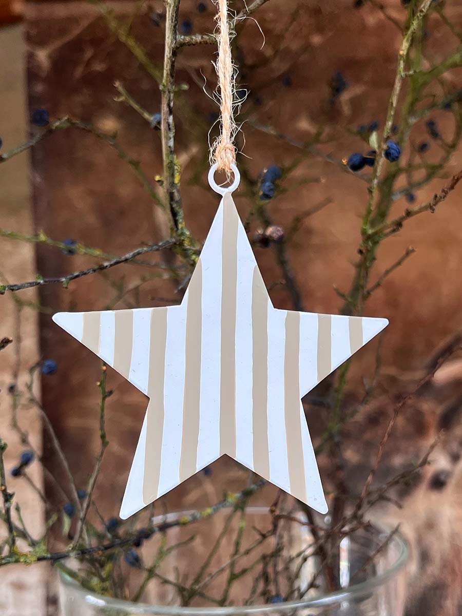 Metallstern taupe weiß gestreift matt Stern S zum Aufhängen D10.5
