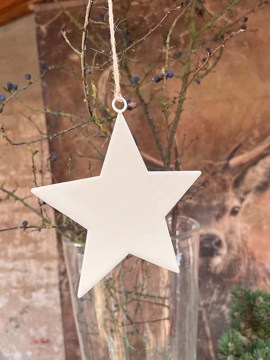 Lieferumfang: 1 Metallstern weiss lackiert Stern M zum Aufhängen D12