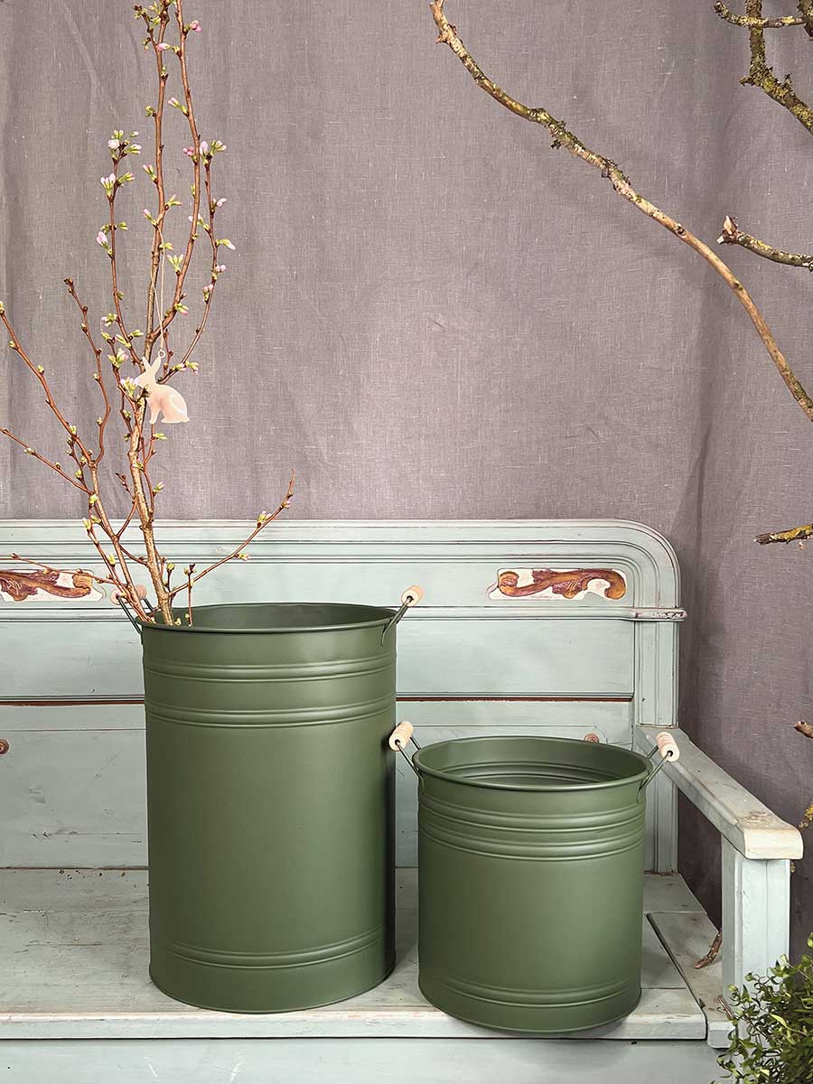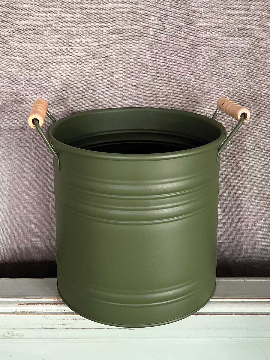 Metalleimer Zenon grün mit Holzgriffen L H22