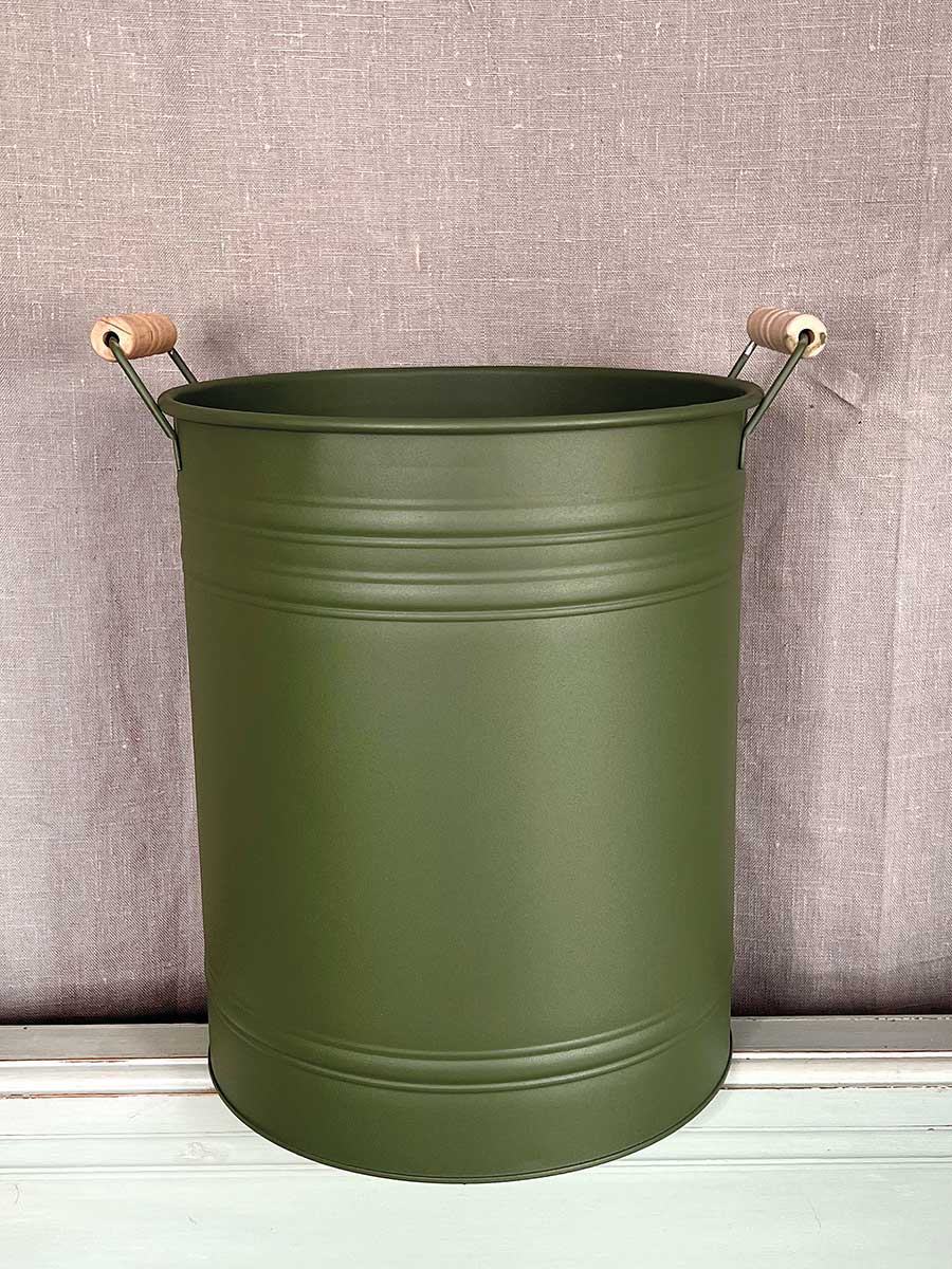 Metalleimer Zenon grün mit Holzgriffen XXL H31