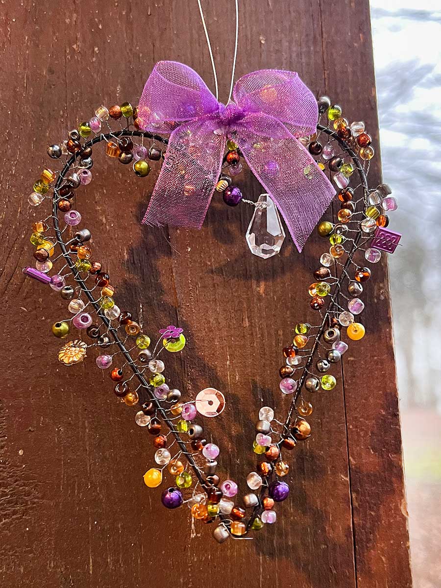 Bell'Arte kleines Perlenherz lila grün kupfer mit Tropfenkristall, 13 x 10 cm