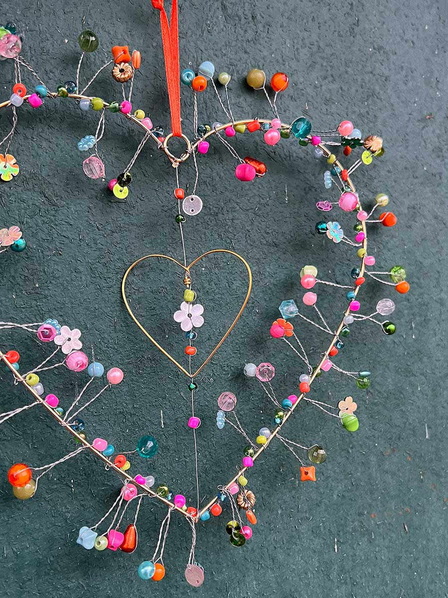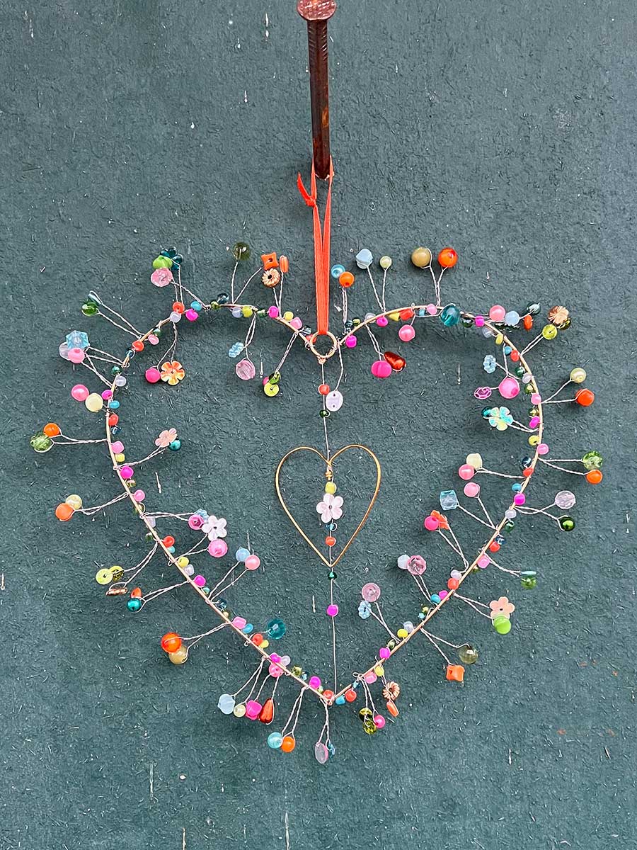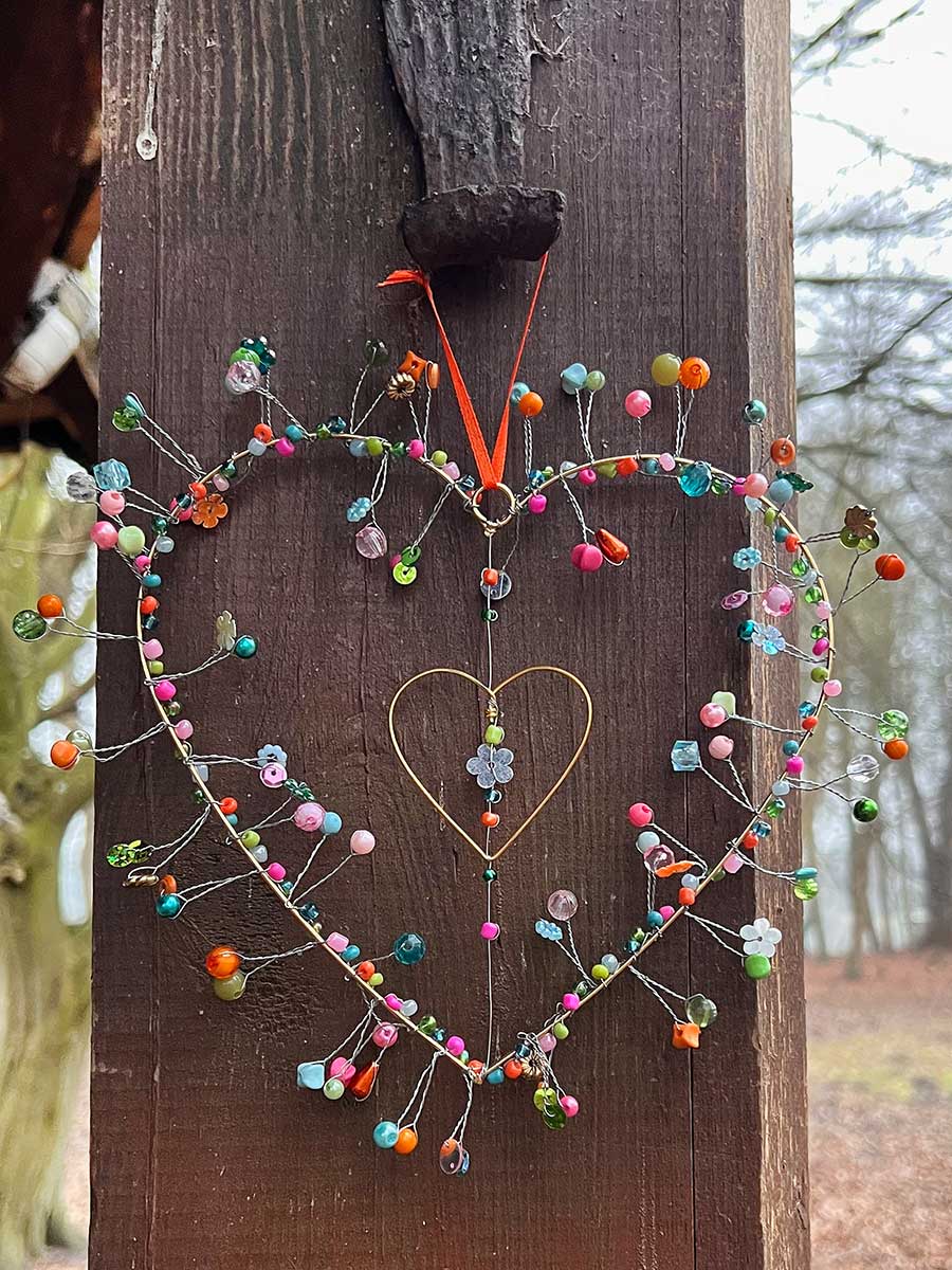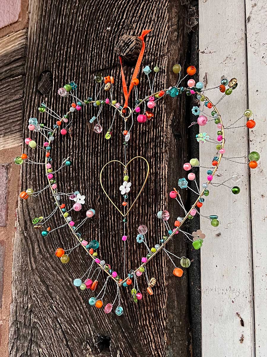 Dieses hübsche goldene Perlenherz von Bell'Arte mit bunten Perlen, Pailletten und Miniherz in der Mitte bringt ein zauberhaftes Funkeln in die Wohnung. Ein eleganter Hingucker für Fenster, Türen und Wände. Mit Satinbändchen zum Aufhängen. Alle Perlenkränze werden in Handarbeit gefertigt, daher kann es zu kleinen Abweichungen in Form und Ausführung kommen.