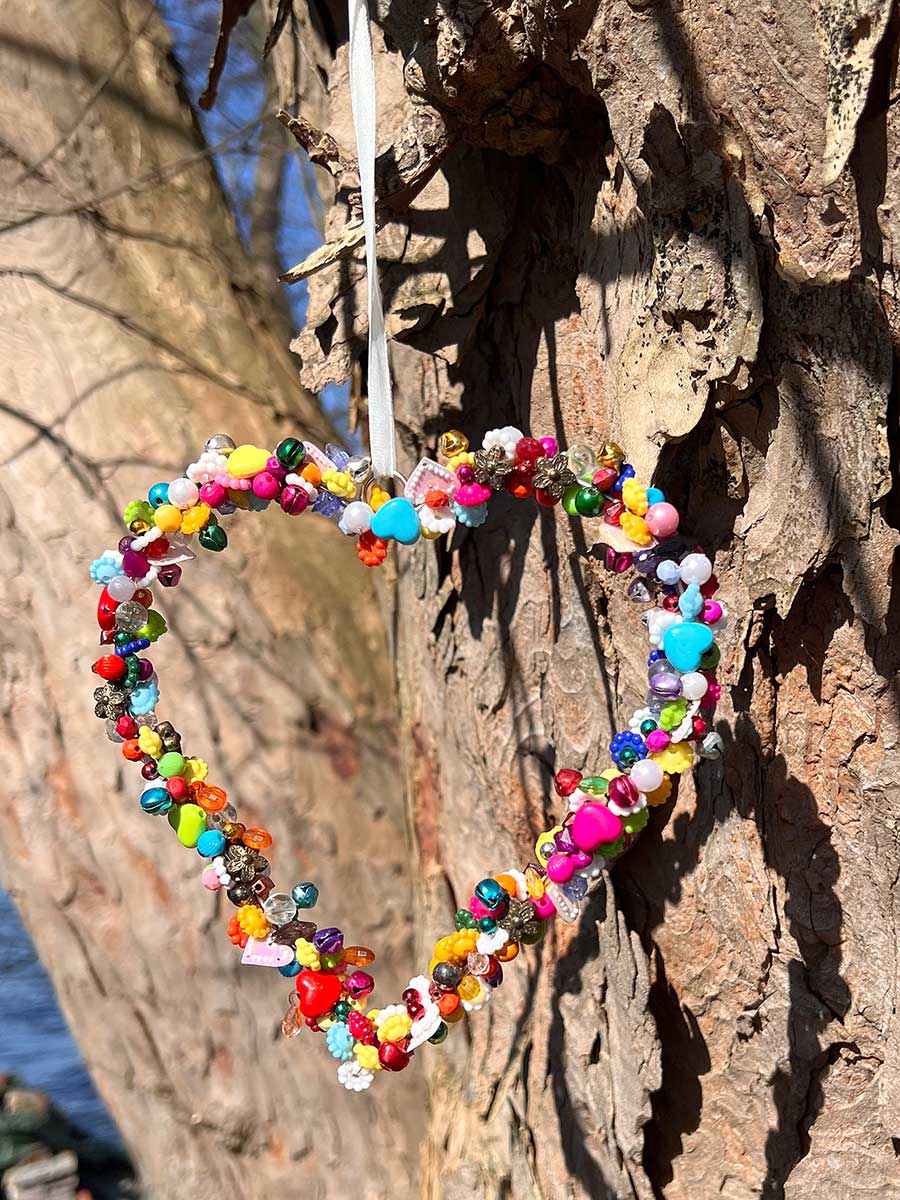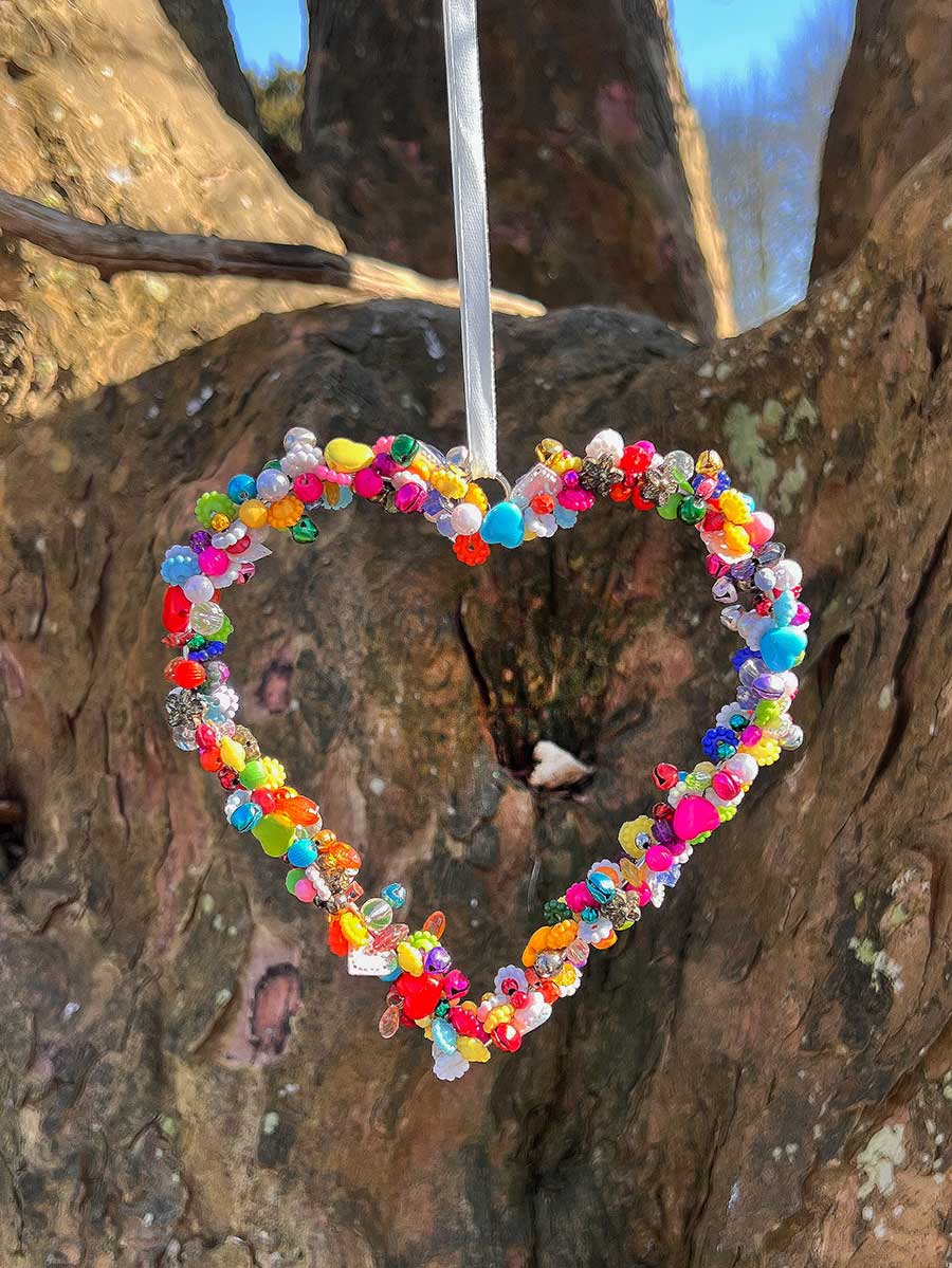 Lieferumfang: 1 Bell'Arte Perlenherz poppig bunt mit vielen Perlen Glöckchen