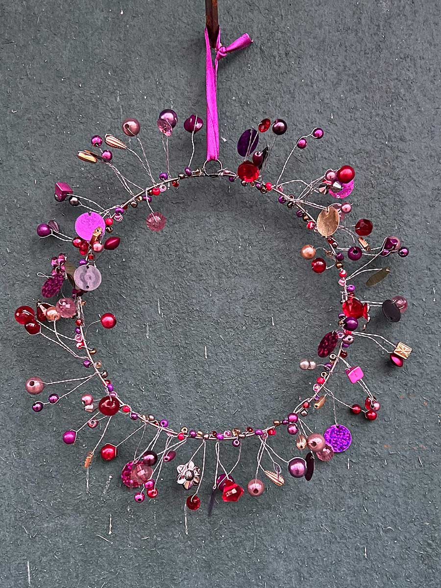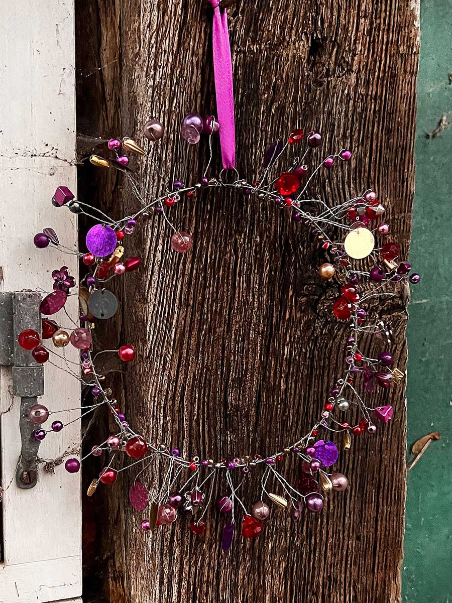 Dieser hübsche Perlenring von Bell'Arte mit aubergine- und lilafarbenen Perlen / Pailletten bringt ein zauberhaftes Funkeln in die Wohnung. Ein eleganter Hingucker für Fenster, Türen und Wände. Mit Bändchen zum Aufhängen. Alle Perlenkränze werden in Handarbeit gefertigt, daher kann es zu kleinen Abweichungen in Form und Ausführung kommen.