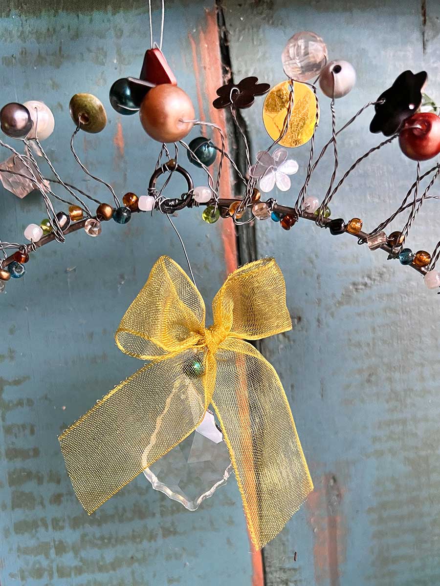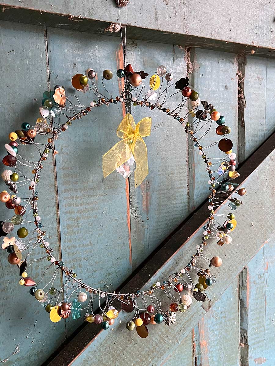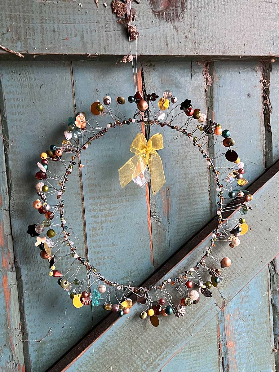 Dieser hübsche Perlenring von Bell'Arte mit petrolfarbenen und braunen Perlen / Pailletten und Kristall in der Mitte bringt ein zauberhaftes Funkeln in die Wohnung. Ein eleganter Hingucker für Fenster, Türen und Wände. Mit Bändchen zum Aufhängen. Alle Perlenkränze werden in Handarbeit gefertigt, daher kann es zu kleinen Abweichungen in Form und Ausführung kommen.