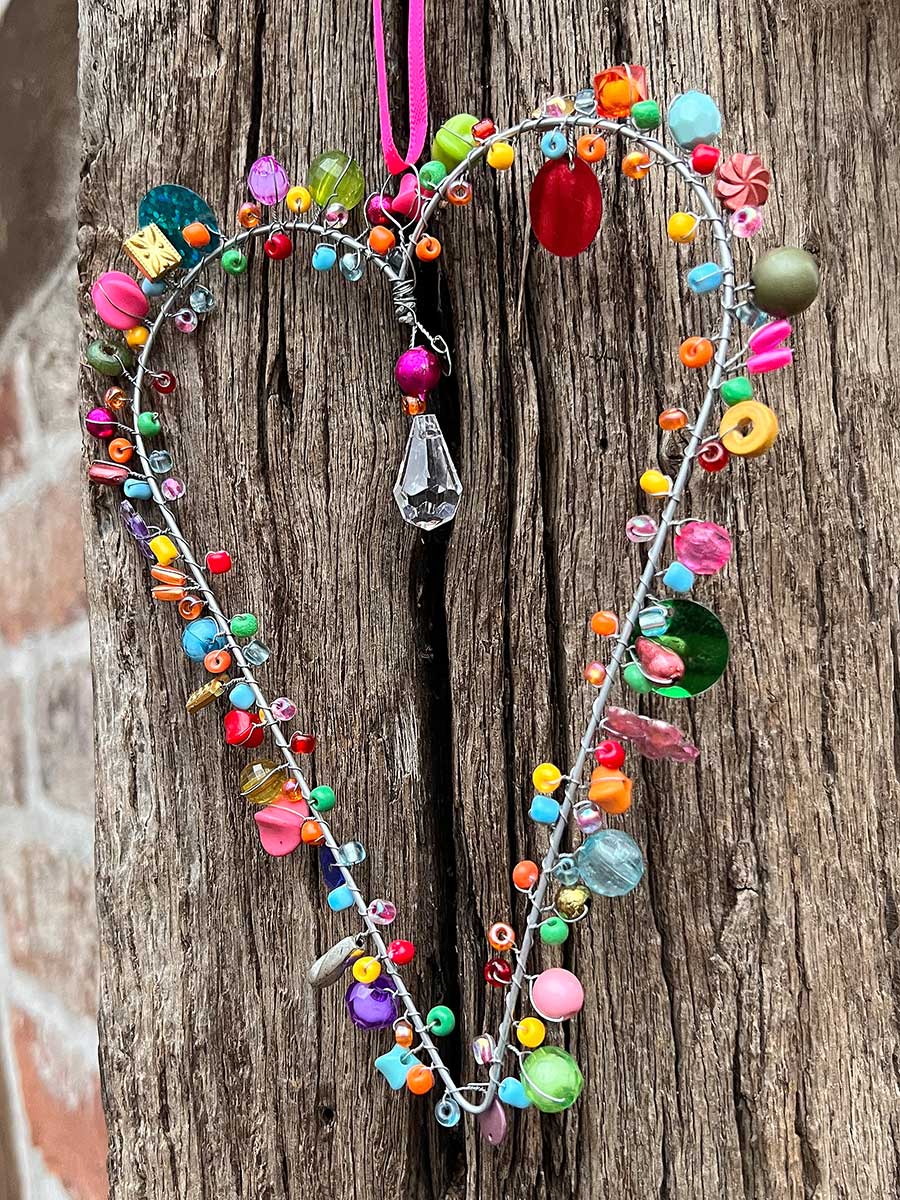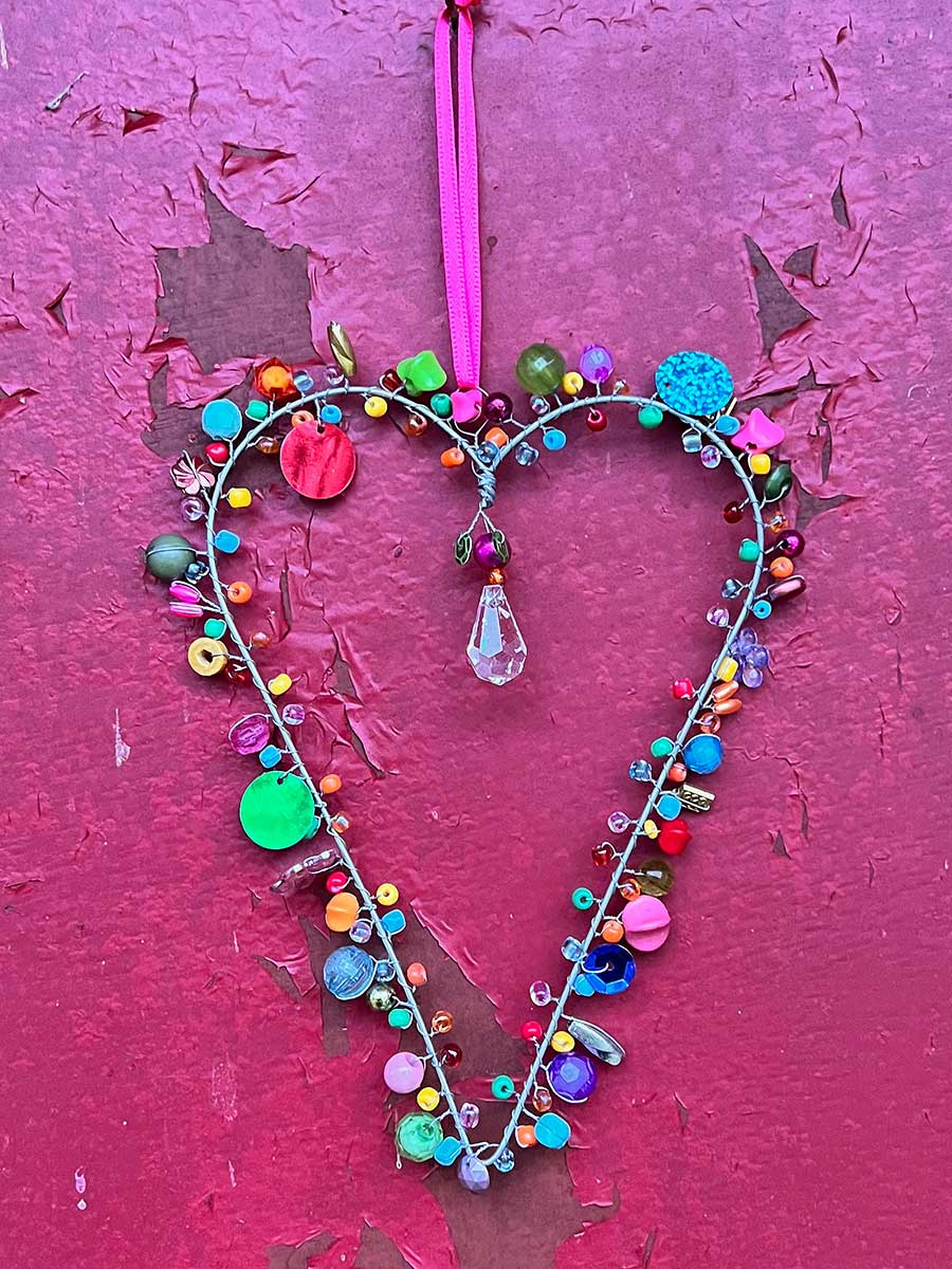 Dieses hübsche schmale Perlenherz von Bell'Arte mit bunten Perlen, Pailletten und Tropfenkristall in der Mitte bringt ein zauberhaftes Funkeln in die Wohnung. Ein eleganter Hingucker für Fenster, Türen und Wände. Mit Satinbändchen zum Aufhängen. Alle Perlenkränze werden in Handarbeit gefertigt, daher kann es zu kleinen Abweichungen in Form und Ausführung kommen.