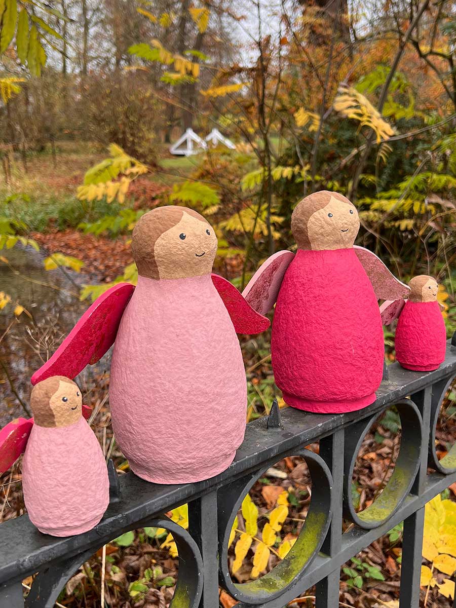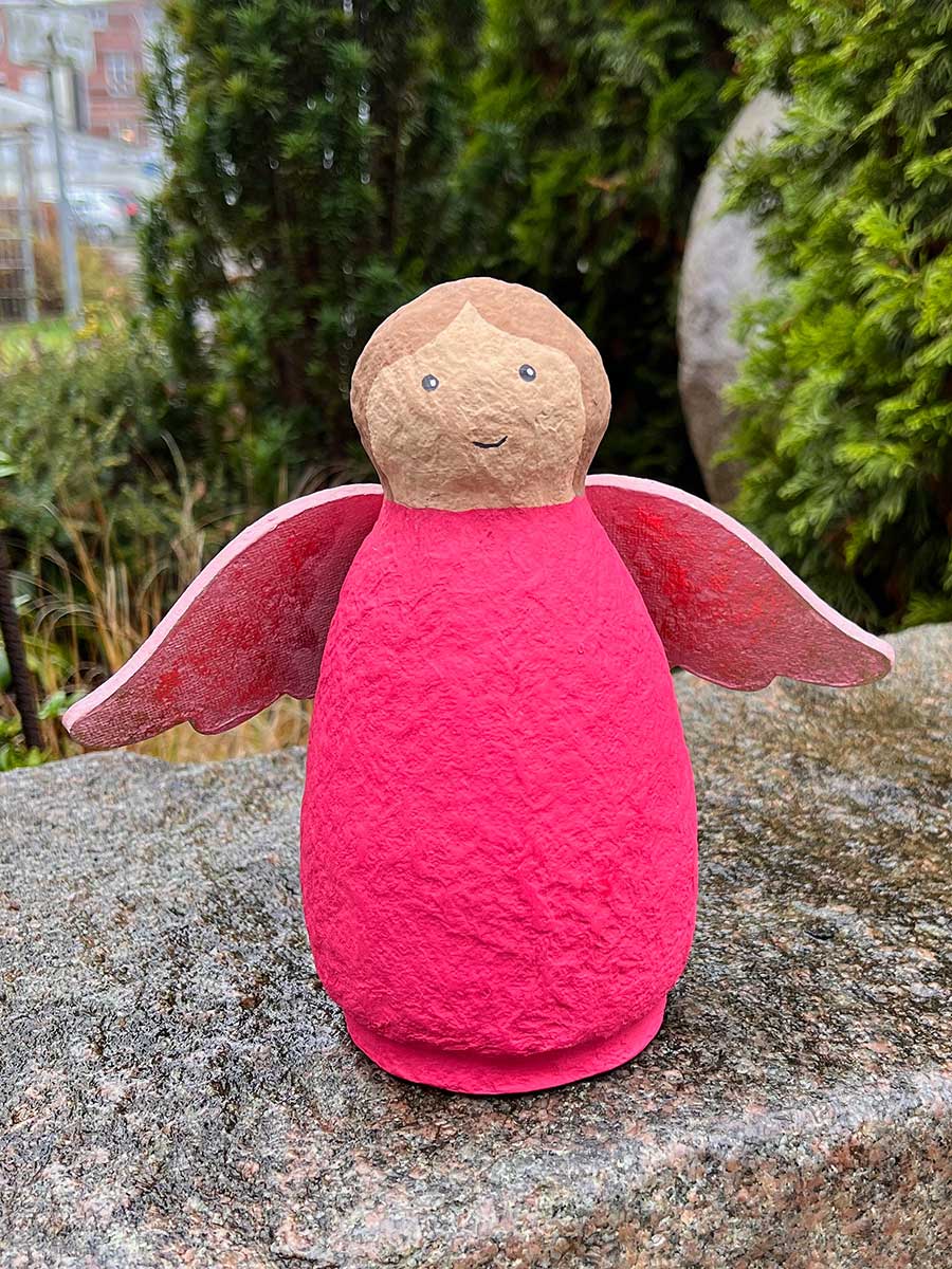 Zauberhafter pinker Engel aus Pappmachee in Größe L mit rosa goldgesprenckelten Flügeln, tolles reduziertes Design