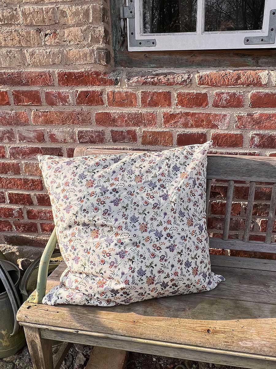 IB Laursen Kissen beige Streublumen lila braun 60x60 inkl. Inlet