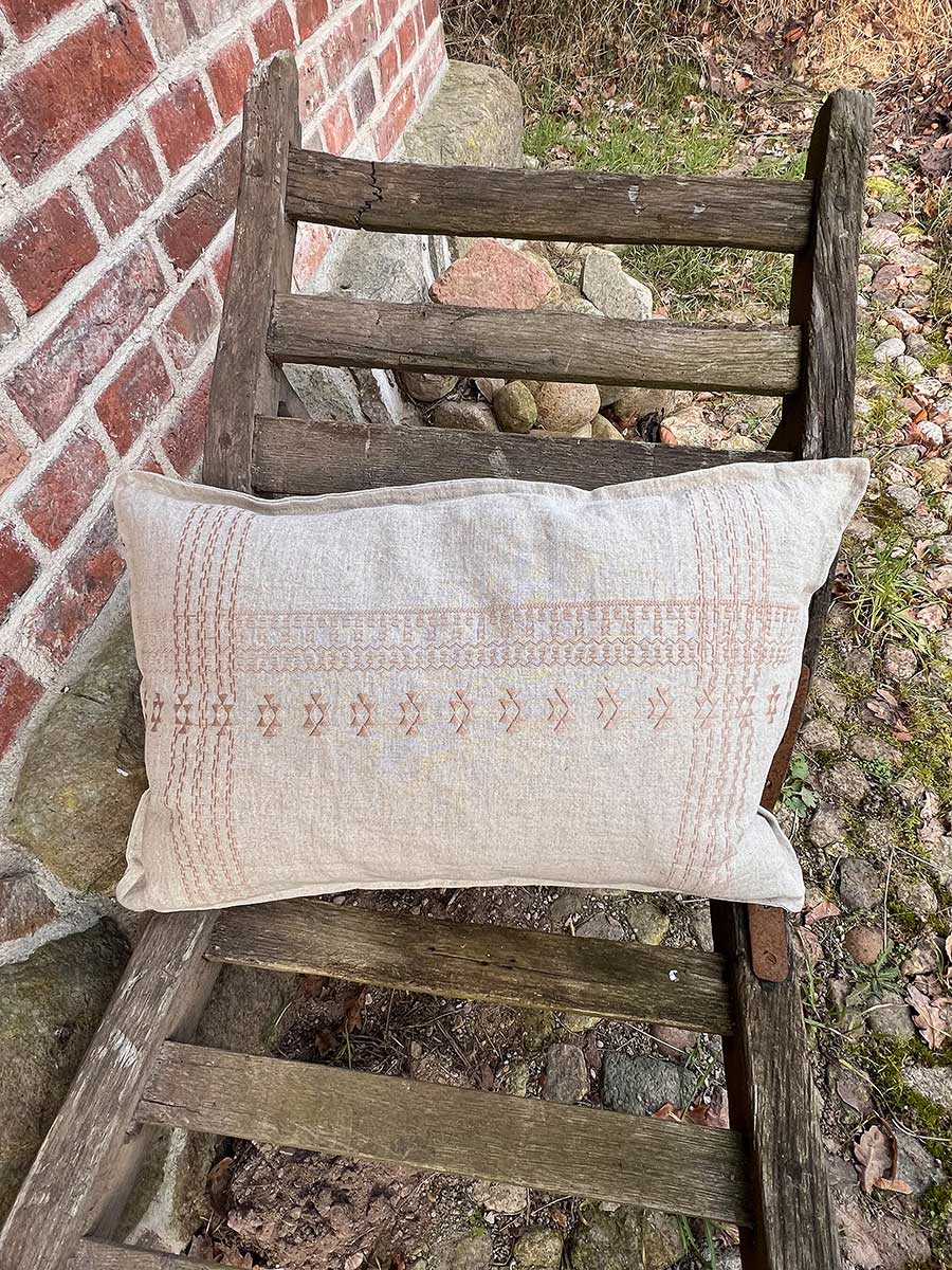 IB Laursen Kissen schlammfarben uni Stickerei Leinen 60x40 inkl. Inlet